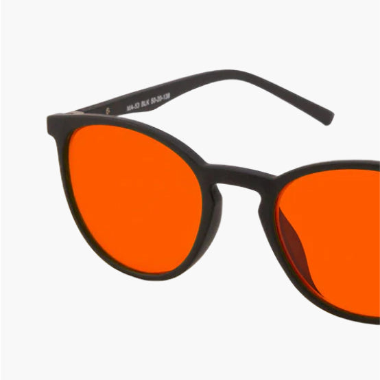 The exact frequencies of light in line with science are blocked with our amber/red lenses. We know that blue and green light found between 400nm-550nm disrupts melatonin production and damages your sleep. Our Blue Light Blocking Glasses block 100% of blue and green light that falls between 400nm and 550nm ensuring you have the most optimal blue blockers in the world.